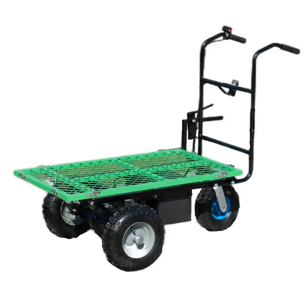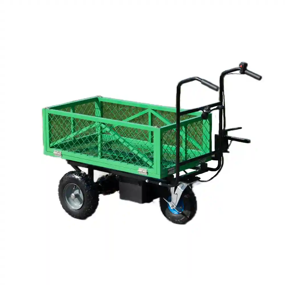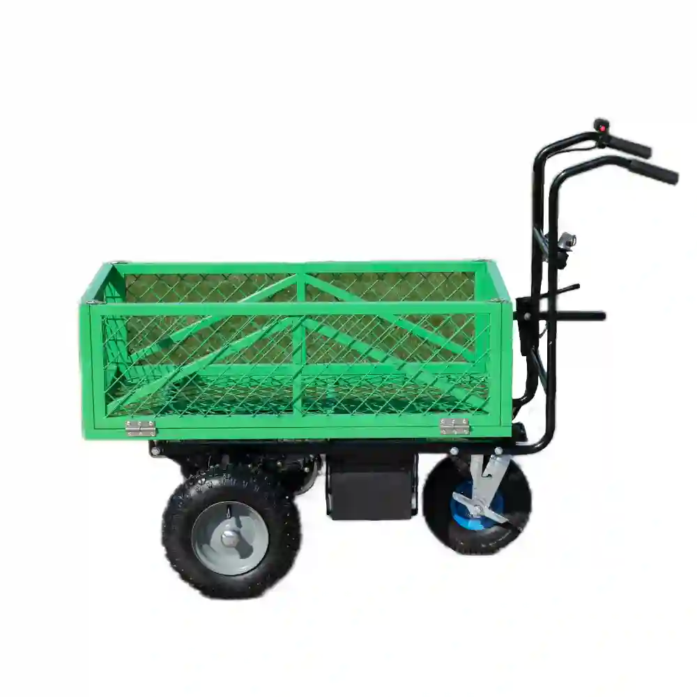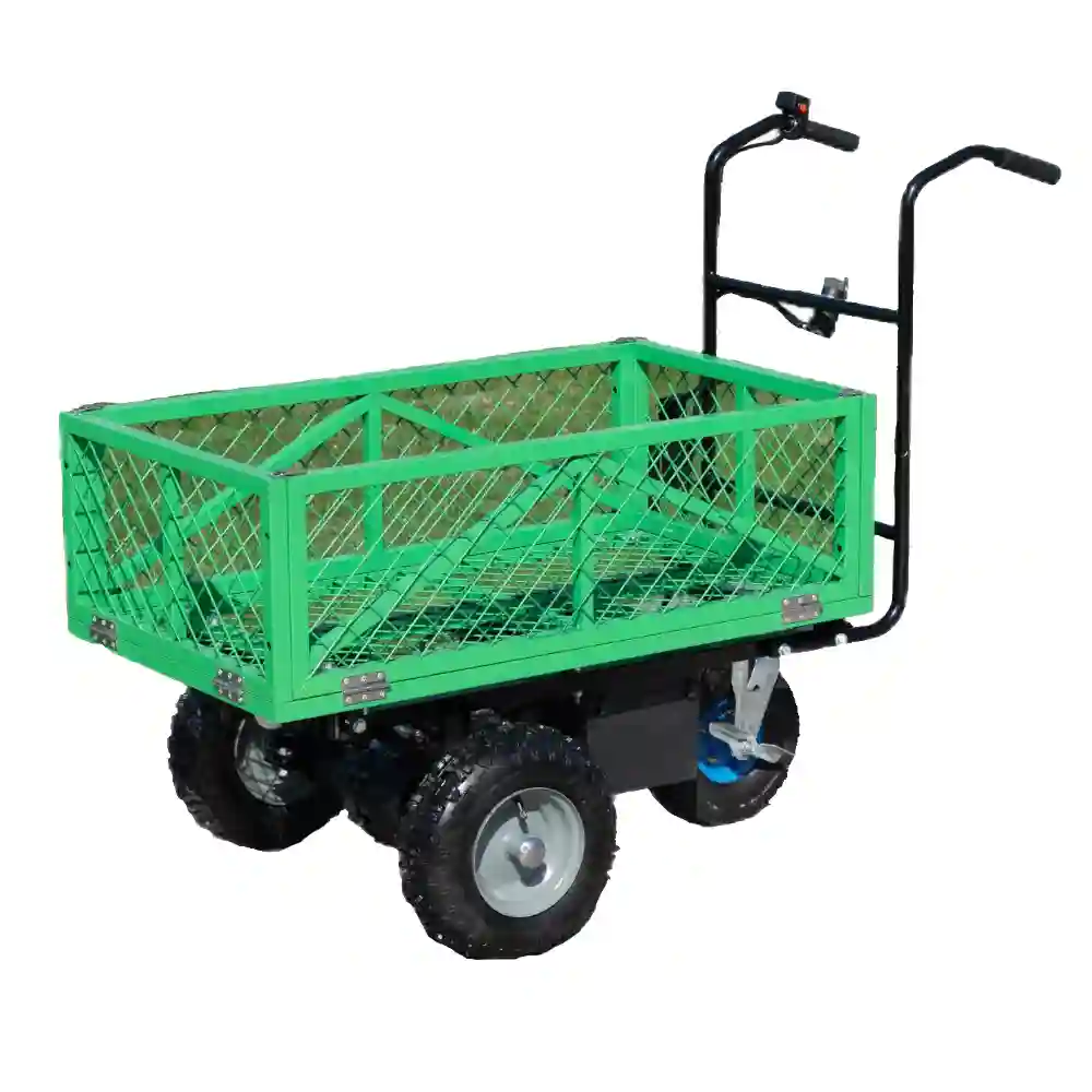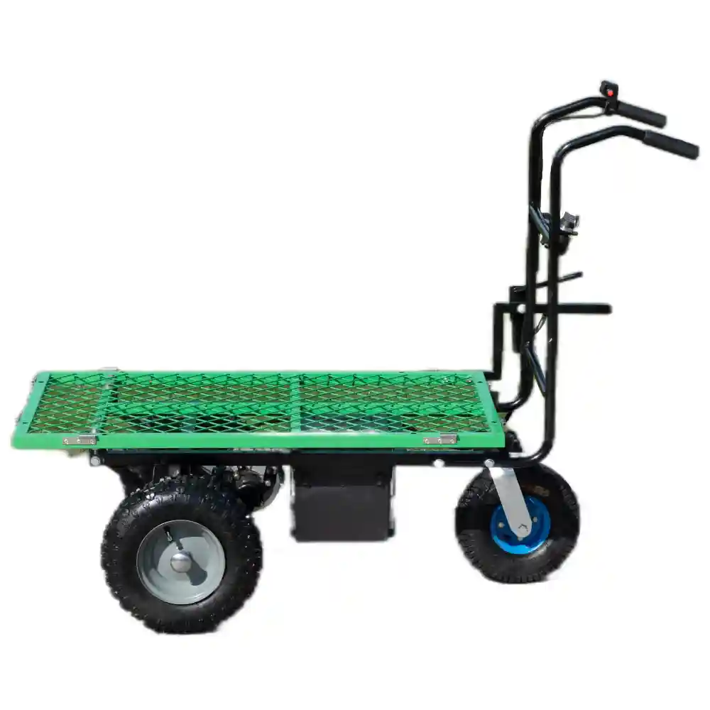 This model is electric design. It is easy to operate.The maximum loading capacity is 200kg. It uses battery instead of engines, so it’s much environmental friendly. At the meantime, it is powerful enough to carry bricks, sand, stones, wood, crops, fruits around various sites. It is zero emission, zero noise, low energy consumption and long endurance.