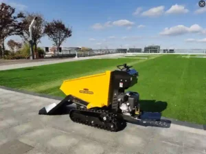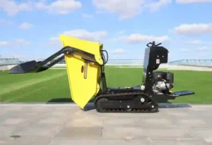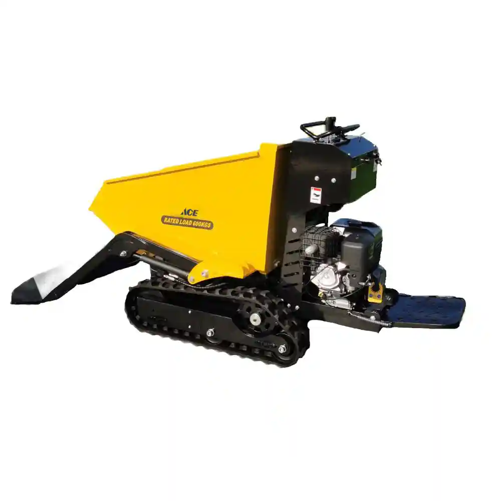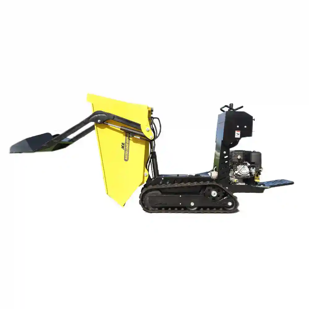 This model is hydraulic design and Track driven. The max loading weight is 600kgs . No lift function,can load it yourself.It’s powerful for tough outdoor sites, carrying bricks, sand, stones, wood, crops, fruits around various sites.