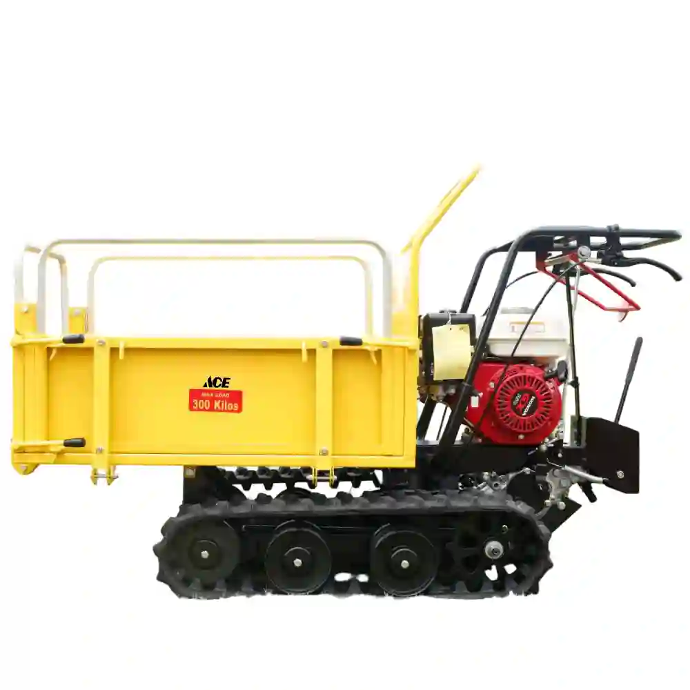 The BY300C is a mechanically driven, tracked multi-functional dump truck with a maximum load capacity of 300 kg and a body width of only 74 cm, making it suitable for narrow or complex terrain. Designed for high-intensity outdoor operations, this product is widely used in construction sites, farms, orchards, forests, and other settings to transport materials such as bricks, sand, gravel, timber, and crops.