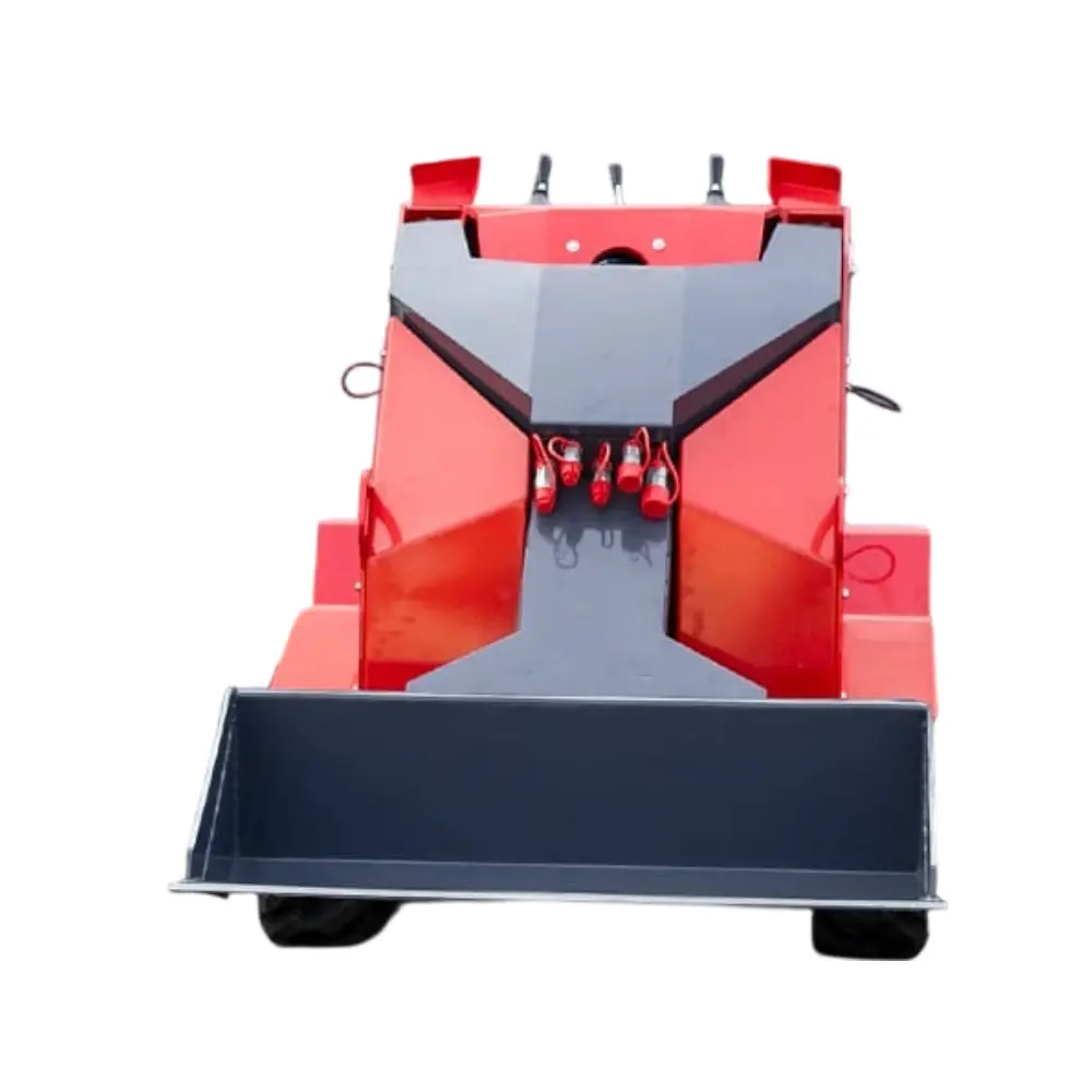 T490 skid steer loader is known for its compactness and flexibility, with a body height of only 1,300mm and a width of 1,100mm, which makes it suitable for narrow space operation. Equipped with 0.12m³ standard bucket and 450KN maximum breakout force, the T490 skid steer loader can efficiently accomplish tasks such as earth moving, agricultural material handling and site cleaning. Its 250kg rated load (max. 350kg) and 6km/h travel speed balance efficiency and maneuverability, which is especially suitable for small projects, greenhouse work and municipal maintenance, providing users with cost-effective solutions.